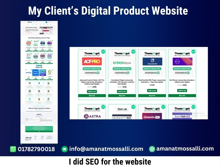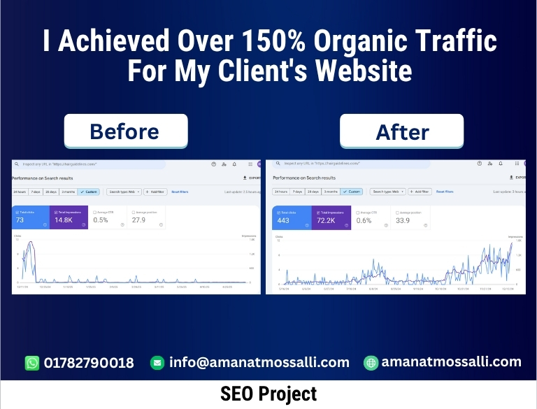I have worked on many SEO projects and built beautiful, fast, and user-friendly WordPress websites for clients in different industries. On this website, you’ll find some of my best work from website designs to SEO projects that helped businesses grow online. I believe in simple, clean designs and smart SEO strategies that really work. I shared just some previous projects.